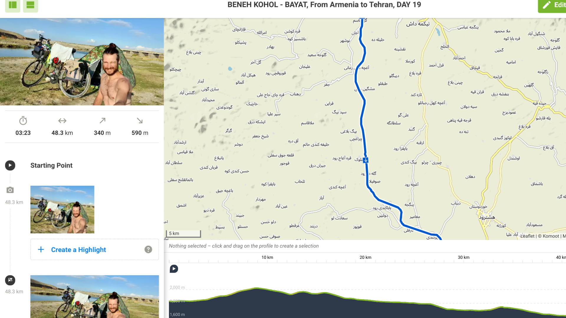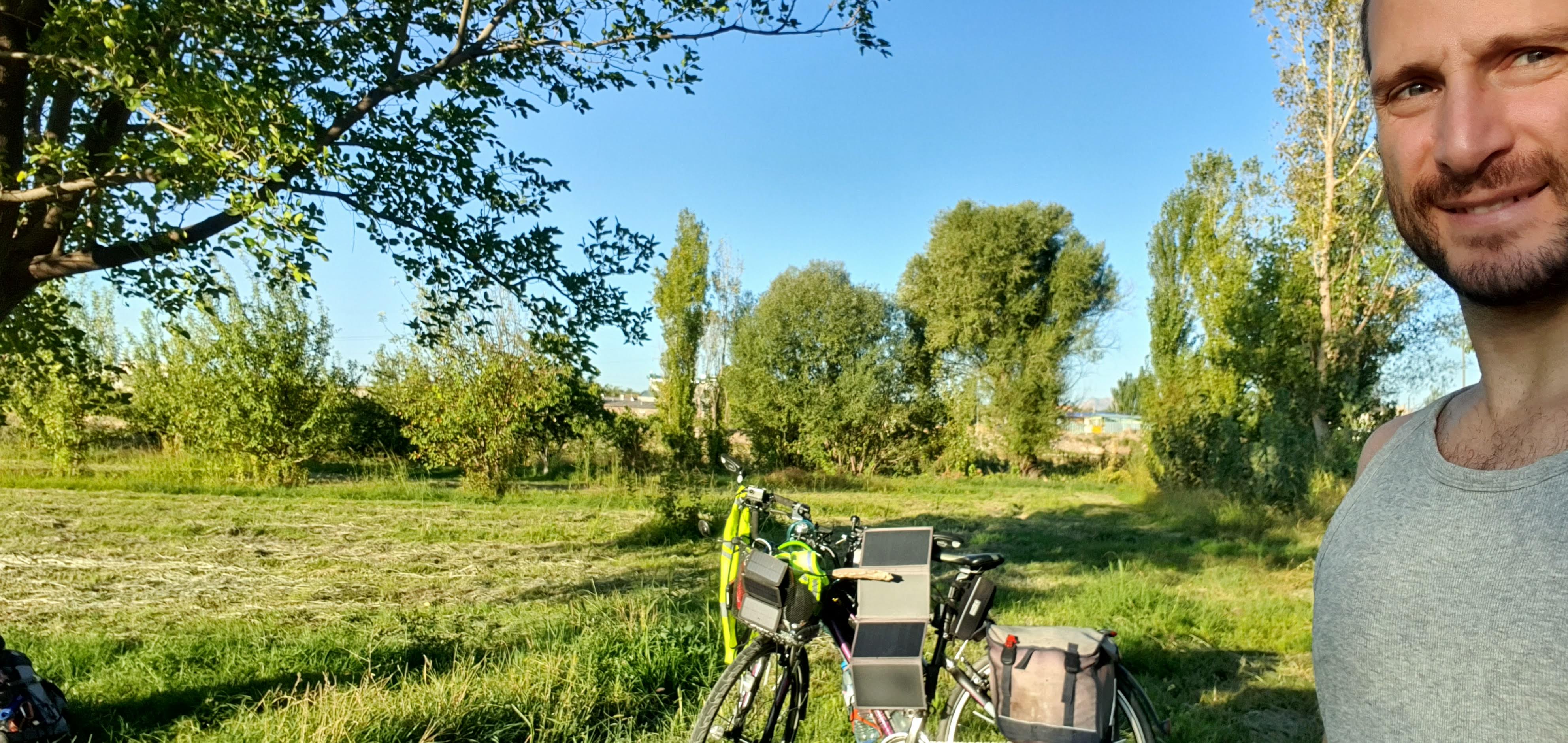It’s sunny, as always. I meet the landowner of where I camped, he is first showing that he is the boss, but then he is kind to me.