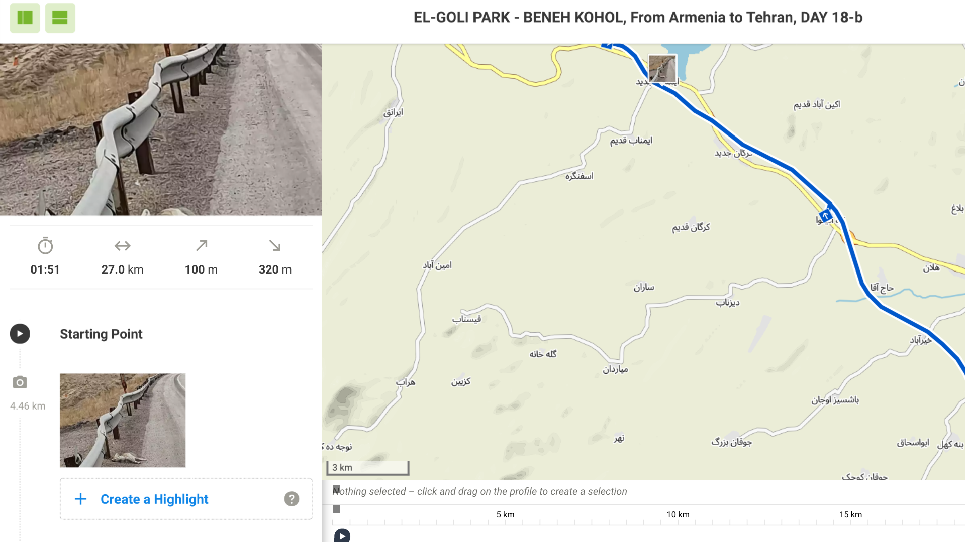 There is (mostly) only one road that goes to Iran. It has one lane per direction, and it is not always in good condition. Well, at least you don’t get lost.